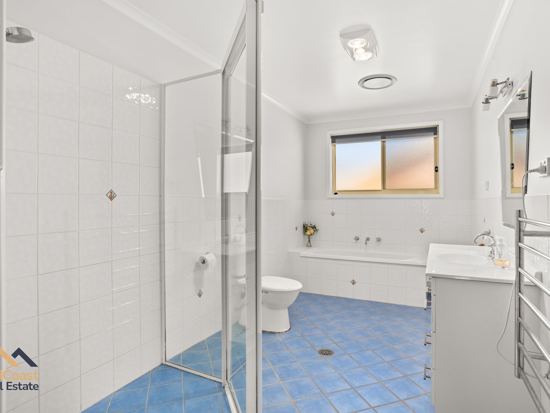 Inside the home all the spaces are luxurious and the and the inclusions are extensive. Ducted air conditioning upstairs, individual split systems in the 2 downstair bedrooms, ceiling fans in all bedrooms, multiple open plan living areas and a good size double garage. Ideal for entertaining, there is a large undercover deck area upstairs with sensational ocean views, another large balcony at the front and downstairs has a large undercover tiled area, big enough to accommodate multiple families.