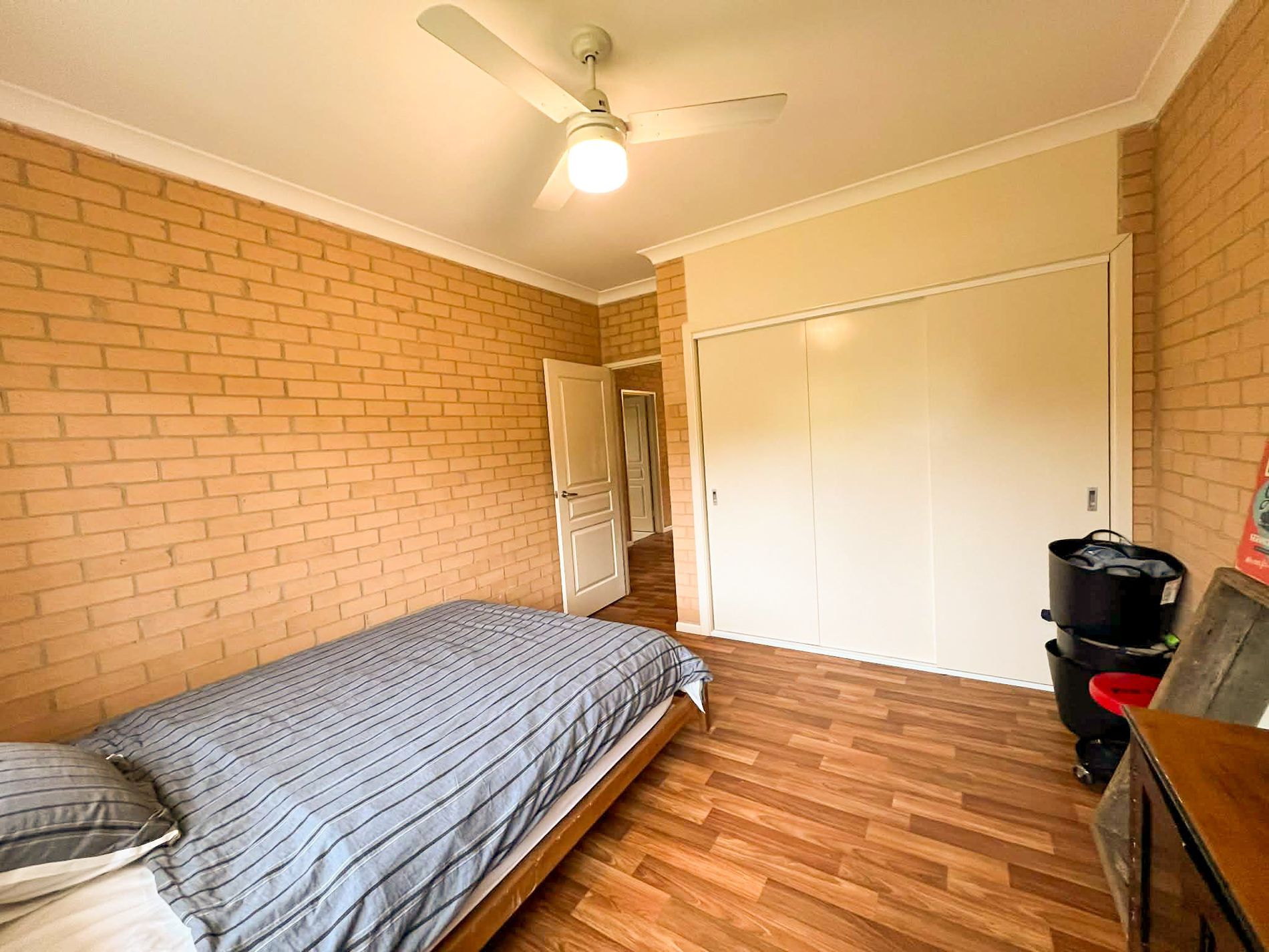 Neat and tidy three-bedroom rental home situated on a level, fully fenced 4,034m² block. The property features ceiling fans in all bedrooms, built-in wardrobes in two rooms, and an open-plan kitchen, living, and dining area. Established fruit trees are located at the rear of the property, offering a pleasant outdoor space.